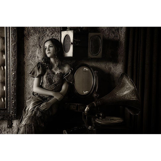 Listen To The Old Music Black Modern Wood Framed Art Print with Double Matting by Sri Hatmoko, Pramujo
