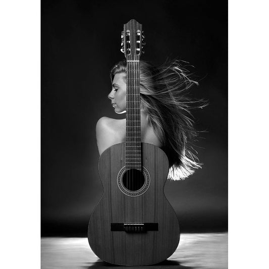 Girl With Guitar Black Modern Wood Framed Art Print with Double Matting by Kanovits, Gabor