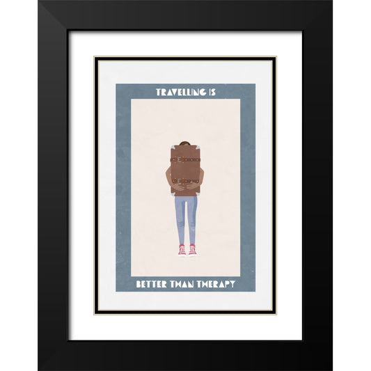 Travelling is better than therapy Black Modern Wood Framed Art Print with Double Matting by Manovski, Sarah