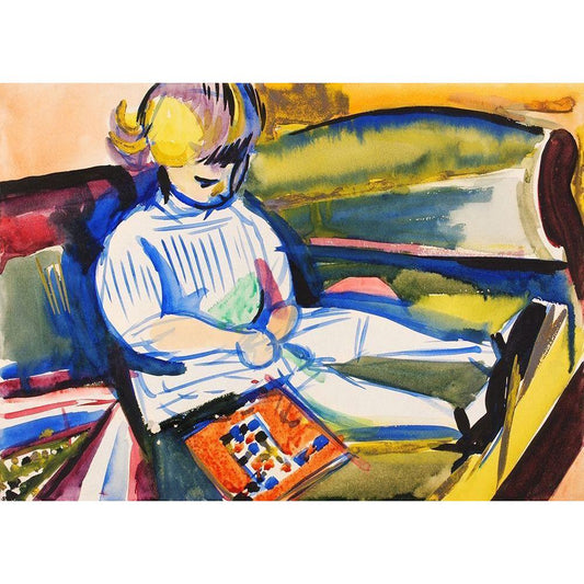 Child on Sofa White Modern Wood Framed Art Print by Sayen, Henry Lyman