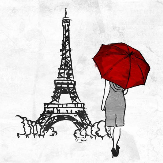 Inked Walk Away Red White Modern Wood Framed Art Print with Double Matting by OnRei