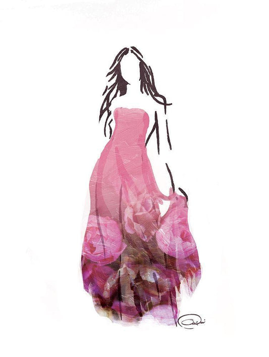 Flower Dress White Modern Wood Framed Art Print with Double Matting by OnRei