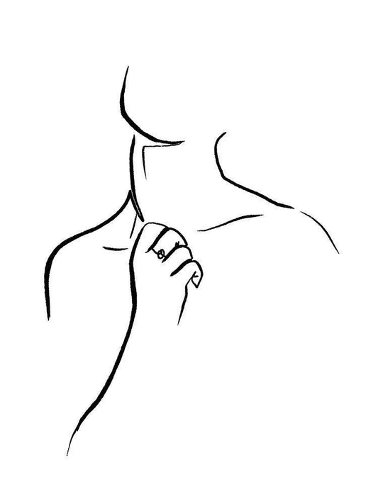 Scribble Neck White Modern Wood Framed Art Print with Double Matting by OnRei