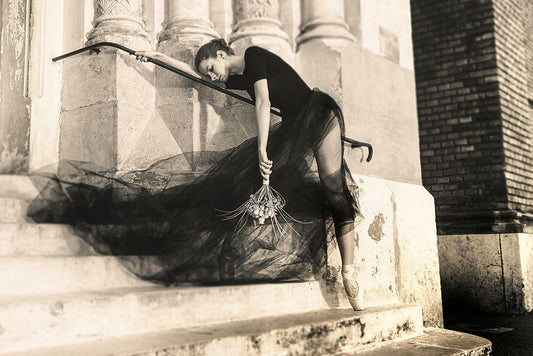 Dancer White Modern Wood Framed Art Print with Double Matting by U-Kei