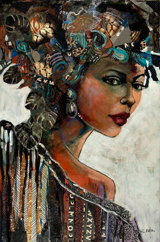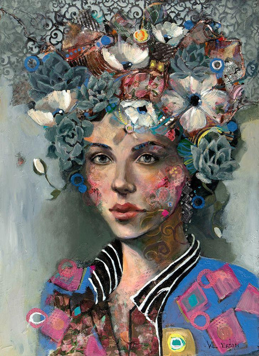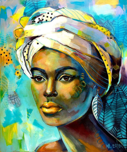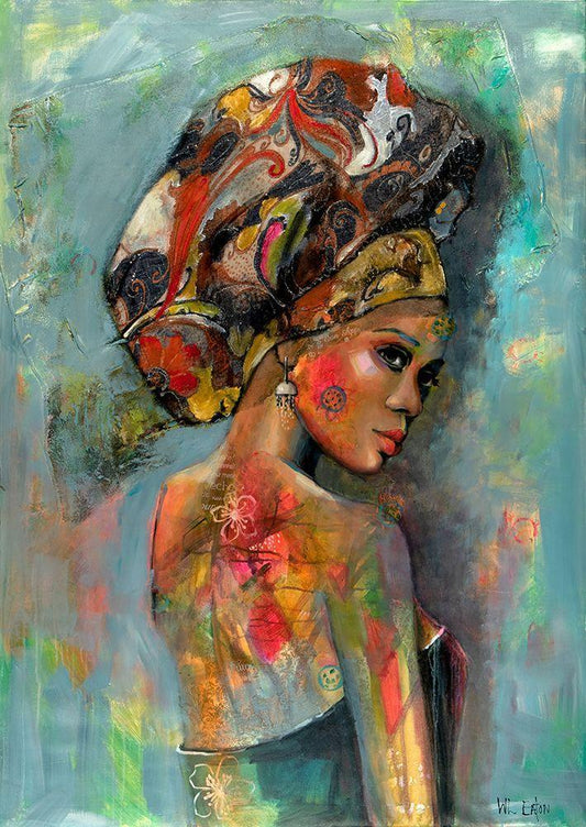 Lady with Headscarf White Modern Wood Framed Art Print with Double Matting by Eaton, Winnie