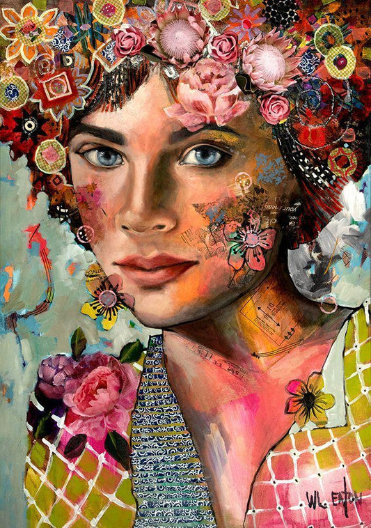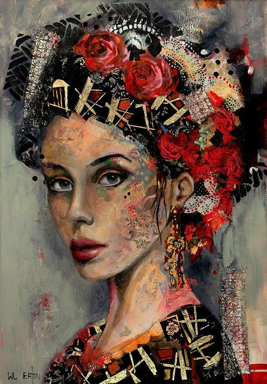 Lady with Red and Orange Flowers White Modern Wood Framed Art Print with Double Matting by Eaton, Winnie