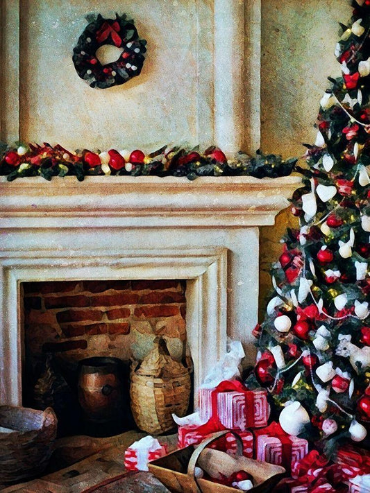 The Christmas By the Fireplace White Modern Wood Framed Art Print with Double Matting by Aldridge, Ashley