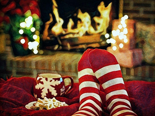 Christmas Feet By The Fire White Modern Wood Framed Art Print with Double Matting by Aldridge, Ashley