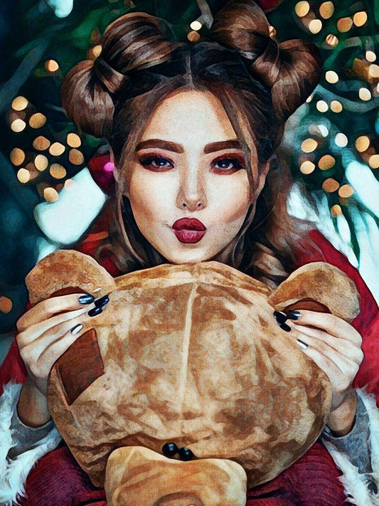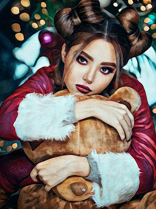Candi Cuddles For Christmas I White Modern Wood Framed Art Print with Double Matting by Aldridge, Ashley