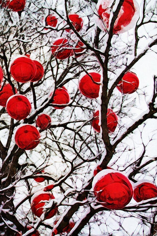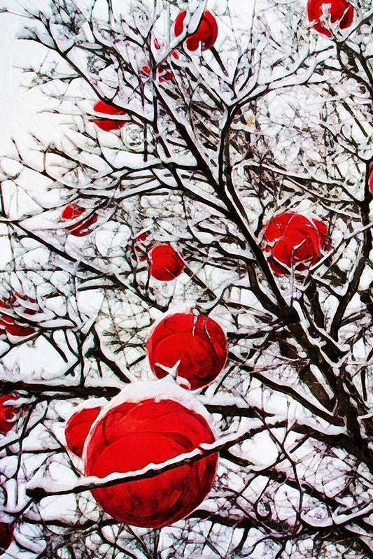 Snowy Red Bauble Branches I White Modern Wood Framed Art Print with Double Matting by Aldridge, Ashley