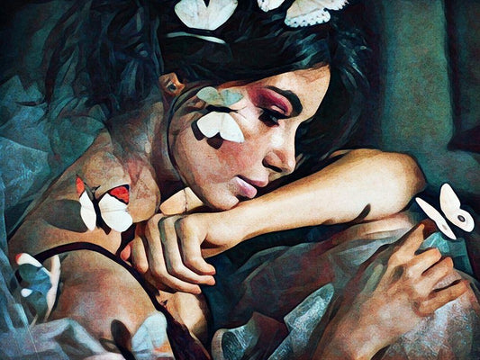 Tattooed Temptress White Modern Wood Framed Art Print with Double Matting by Aldridge, Ashley