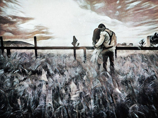 Lovers Countryside Cuddle White Modern Wood Framed Art Print with Double Matting by Aldridge, Ashley