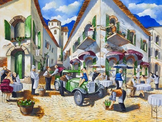 Corner Cafe at Cafe da Vinci II White Modern Wood Framed Art Print with Double Matting by West, Ronald
