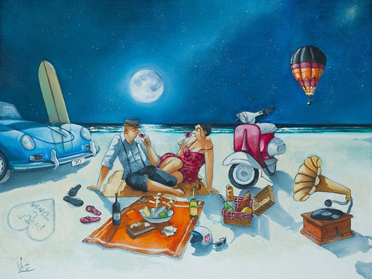 Evening Picnic White Modern Wood Framed Art Print with Double Matting by West, Ronald