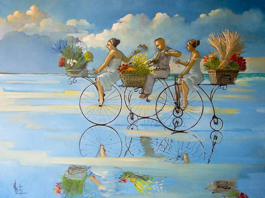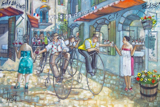 Tour de France II White Modern Wood Framed Art Print with Double Matting by West, Ronald