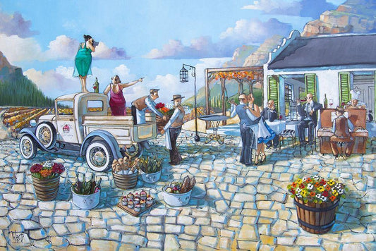 Boland Delivery I White Modern Wood Framed Art Print with Double Matting by West, Ronald