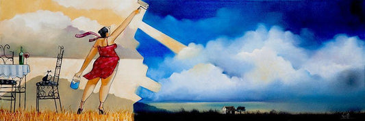 Painting Clouds White Modern Wood Framed Art Print with Double Matting by West, Ronald
