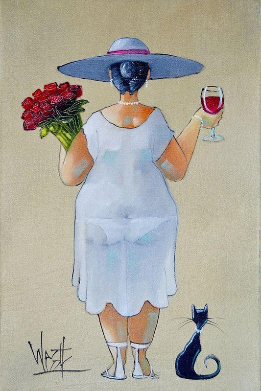 Lady with Roses I White Modern Wood Framed Art Print with Double Matting by West, Ronald