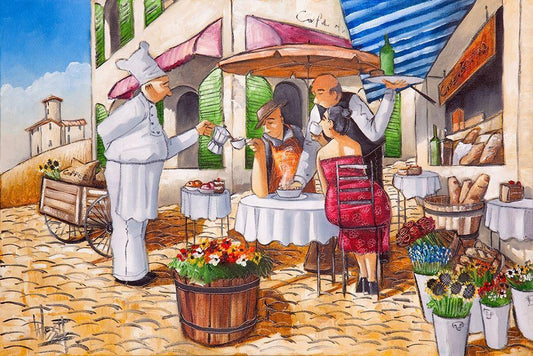 Private Lunch for Two White Modern Wood Framed Art Print with Double Matting by West, Ronald