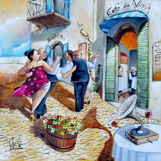 Polka at Cafe da Vinci White Modern Wood Framed Art Print with Double Matting by West, Ronald