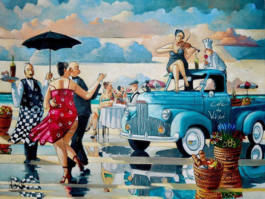 Lunchtime Lambada White Modern Wood Framed Art Print with Double Matting by West, Ronald
