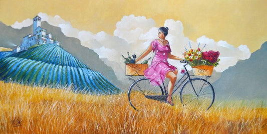 Gypsy Girl White Modern Wood Framed Art Print with Double Matting by West, Ronald