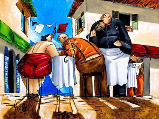 Dinner for Two White Modern Wood Framed Art Print with Double Matting by West, Ronald