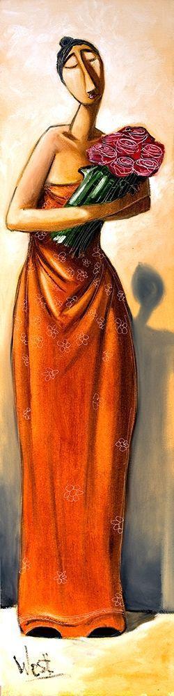 Tall Lady V White Modern Wood Framed Art Print with Double Matting by West, Ronald