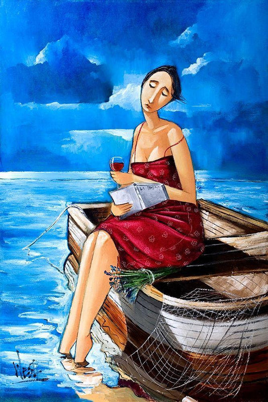 Sad Lady in Hat White Modern Wood Framed Art Print with Double Matting by West, Ronald