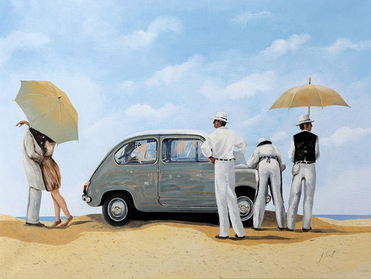 Sunday Drive White Modern Wood Framed Art Print with Double Matting by West, Ronald