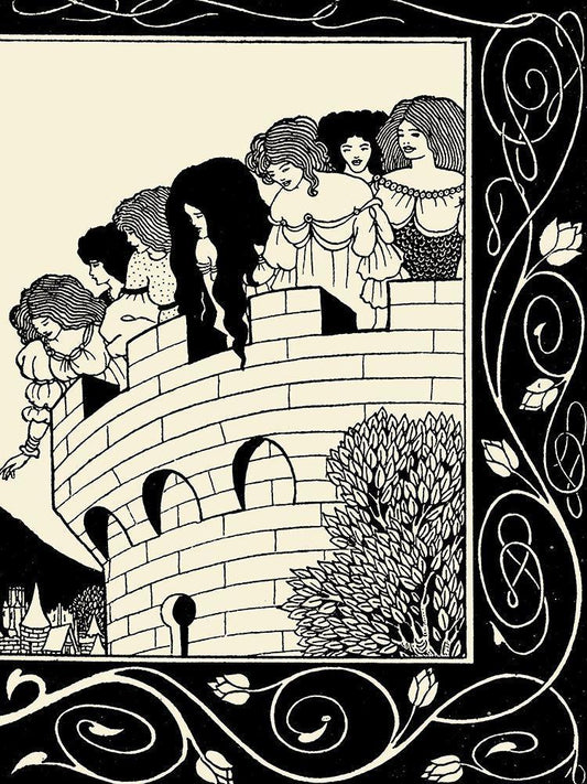 Morte DArthur 1893 - How Four Queens found Lancelot Sleeping White Modern Wood Framed Art Print with Double Matting by Beardsley, Aubrey