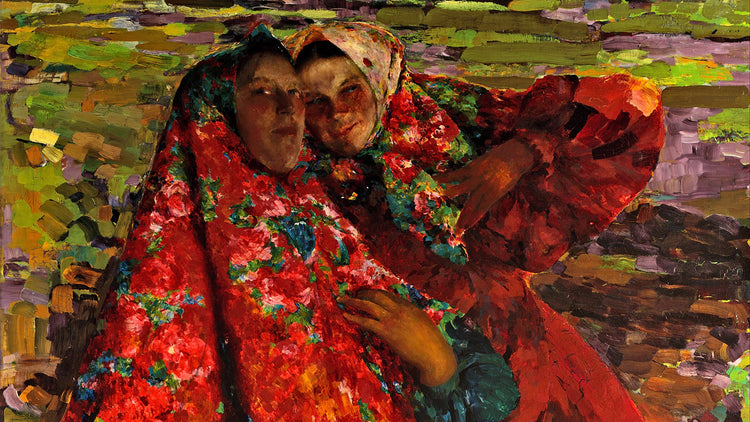 Two Girls 20x24 Black Modern Wood Framed Art Print Poster by Malyavin, Filipp