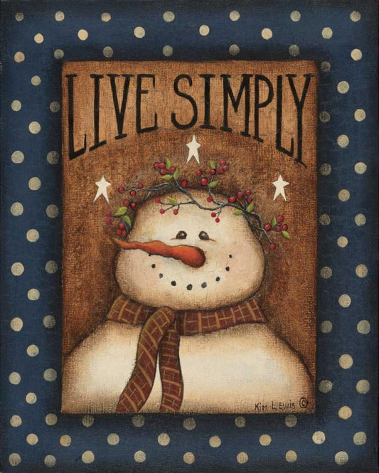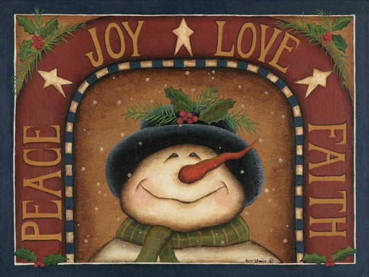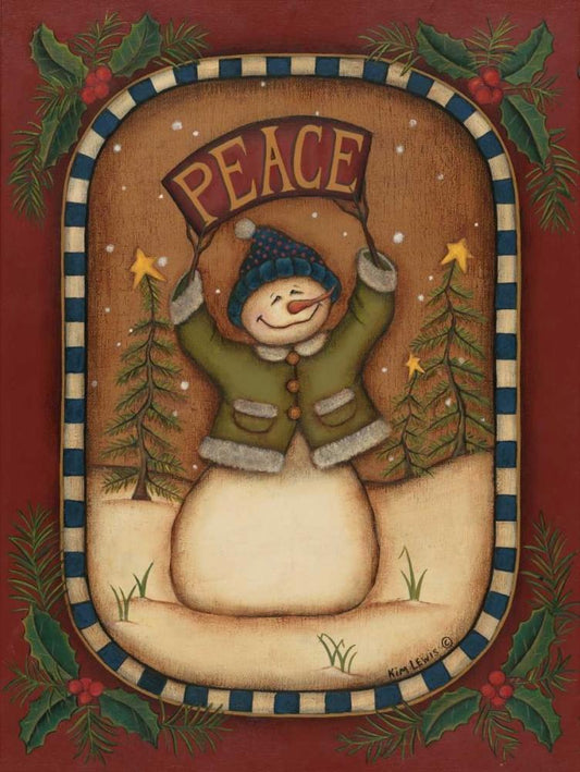 Peace Snowman Black Ornate Wood Framed Art Print with Double Matting by Lewis, Kim