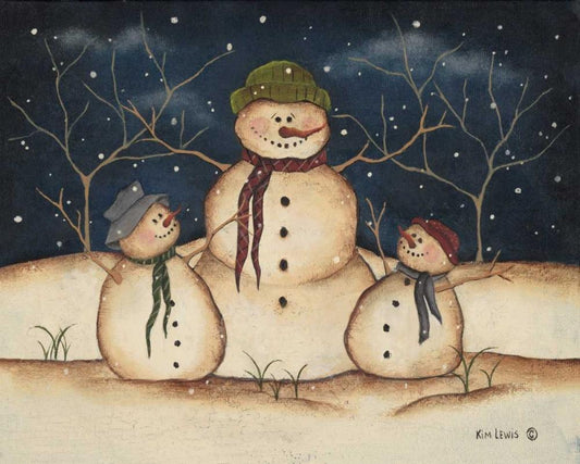 Three Snowmen Black Ornate Wood Framed Art Print with Double Matting by Lewis, Kim