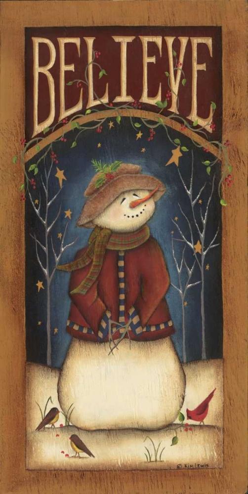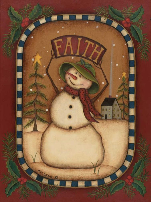Faith Snowman Black Ornate Wood Framed Art Print with Double Matting by Lewis, Kim
