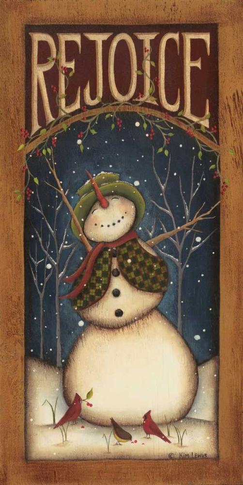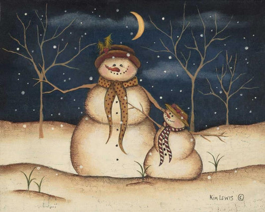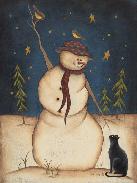 snowman Black Ornate Wood Framed Art Print with Double Matting by Lewis, Kim