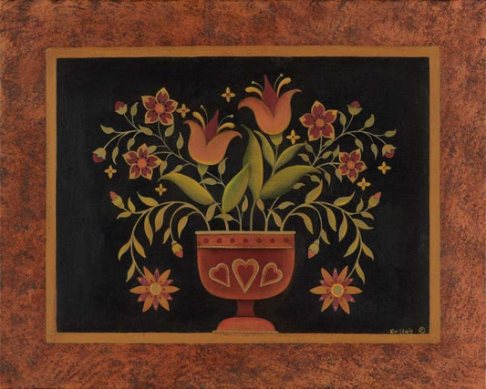 Floral with Hearts Black Ornate Wood Framed Art Print with Double Matting by Lewis, Kim