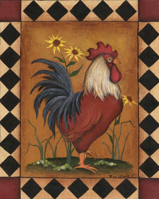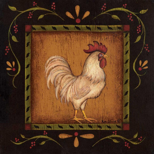 Square Rooster Left Black Ornate Wood Framed Art Print with Double Matting by Lewis, Kim
