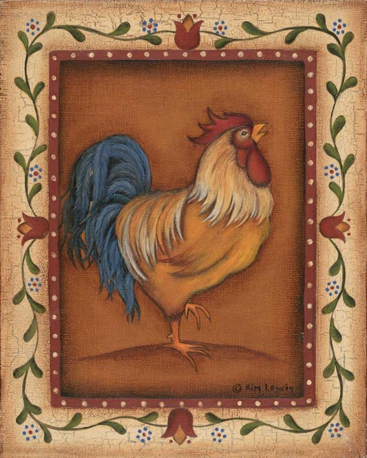 Gold Rooster Black Ornate Wood Framed Art Print with Double Matting by Lewis, Kim