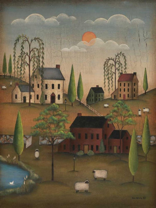 Village with Sheep Black Ornate Wood Framed Art Print with Double Matting by Lewis, Kim