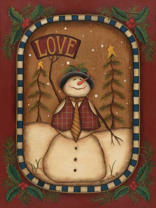 Love Snowman Black Ornate Wood Framed Art Print with Double Matting by Lewis, Kim