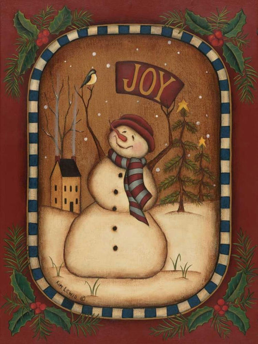 Joy Snowman Black Ornate Wood Framed Art Print with Double Matting by Lewis, Kim