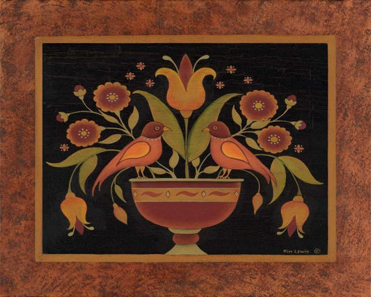 Floral with Birds Black Ornate Wood Framed Art Print with Double Matting by Lewis, Kim
