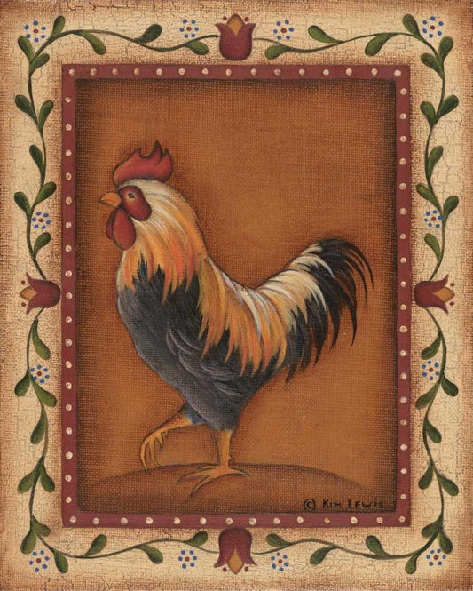 Black Rooster Black Ornate Wood Framed Art Print with Double Matting by Lewis, Kim