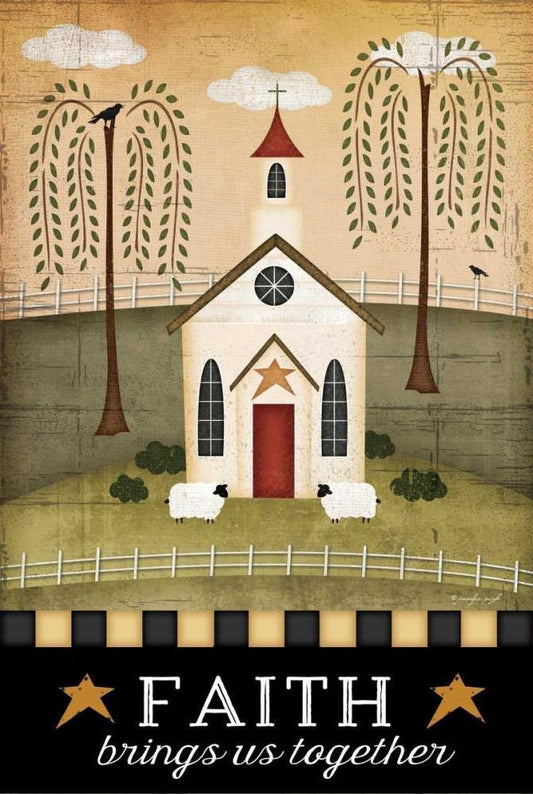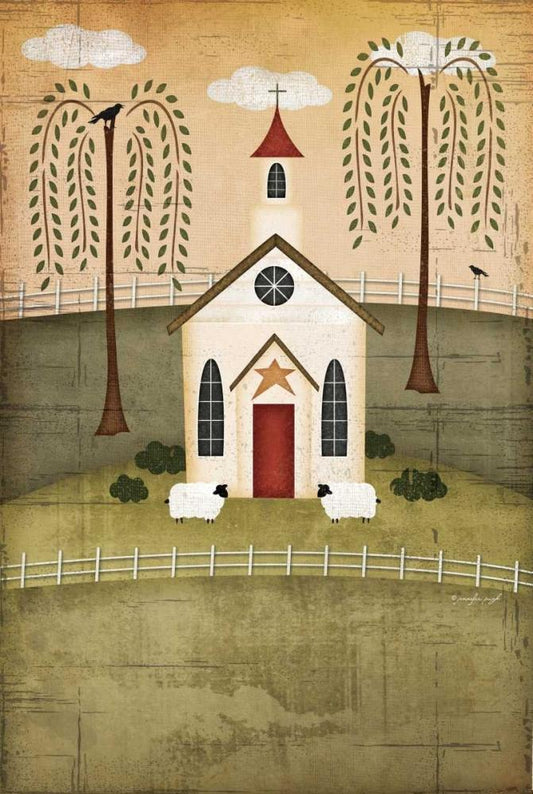 Primitive Church Black Ornate Wood Framed Art Print with Double Matting by Pugh, Jennifer