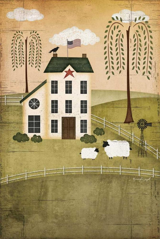 Primitive House Black Ornate Wood Framed Art Print with Double Matting by Pugh, Jennifer