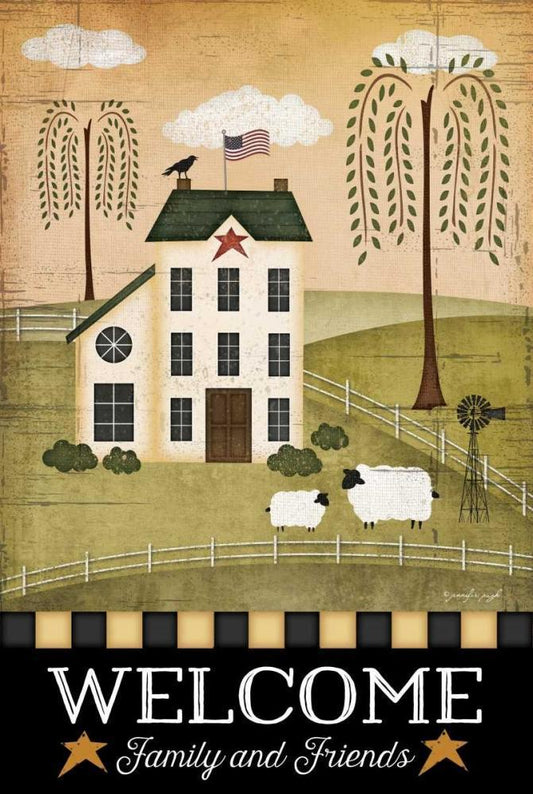 Primitive Welcome Black Ornate Wood Framed Art Print with Double Matting by Pugh, Jennifer