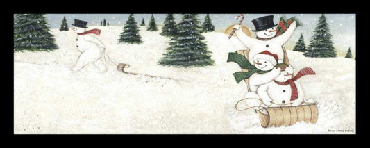 Christmas Valley Snowman Black Ornate Wood Framed Art Print with Double Matting by Brown, David Carter