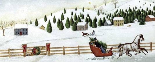 Christmas Valley Sleigh Black Ornate Wood Framed Art Print with Double Matting by Brown, David Carter