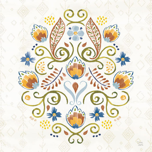 Folk Beetle II Neutral Black Ornate Wood Framed Art Print with Double Matting by Zaman, Farida